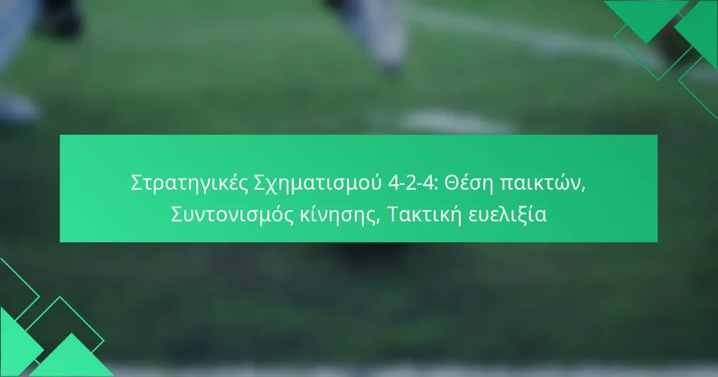 Η διάταξη 4-2-4 στο ποδόσφαιρο είναι μια δυναμική τακτική που αποτελείται από τέσσερις αμυντικούς, δύο μέσους και τέσσερις επιθετικούς. Αυτή η διάταξη δίνει προτεραιότητα στην επιθετική παιχνιδιού ενώ εξασφαλίζει μια σταθερή αμυντική βάση, επιτρέποντας στις ομάδες να ασκούν πίεση στους αντιπάλους τους και να δημιουργούν ευκαιρίες για γκολ αποτελεσματικά.