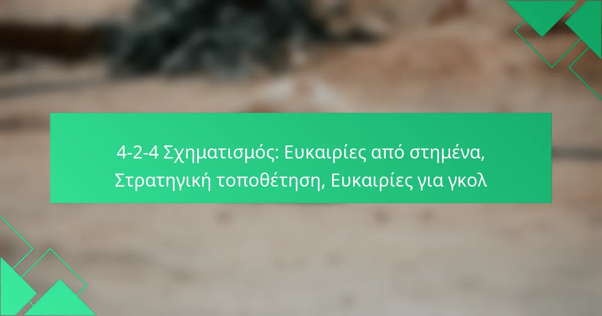 Η βελτιστοποίηση των ευκαιριών από στημένες φάσεις στη διάταξη 4-2-4 περιλαμβάνει στρατηγική τοποθέτηση και σαφείς ρόλους για τους παίκτες κατά τη διάρκεια των κόρνερ, των ελεύθερων χτυπημάτων και των ρίψεων. Εκμεταλλευόμενοι τα πλεονεκτήματα αυτής της διάταξης, οι ομάδες μπορούν να δημιουργήσουν αποτελεσματικές ευκαιρίες σκοραρίσματος και να εκμεταλλευτούν τις αμυντικές αδυναμίες.