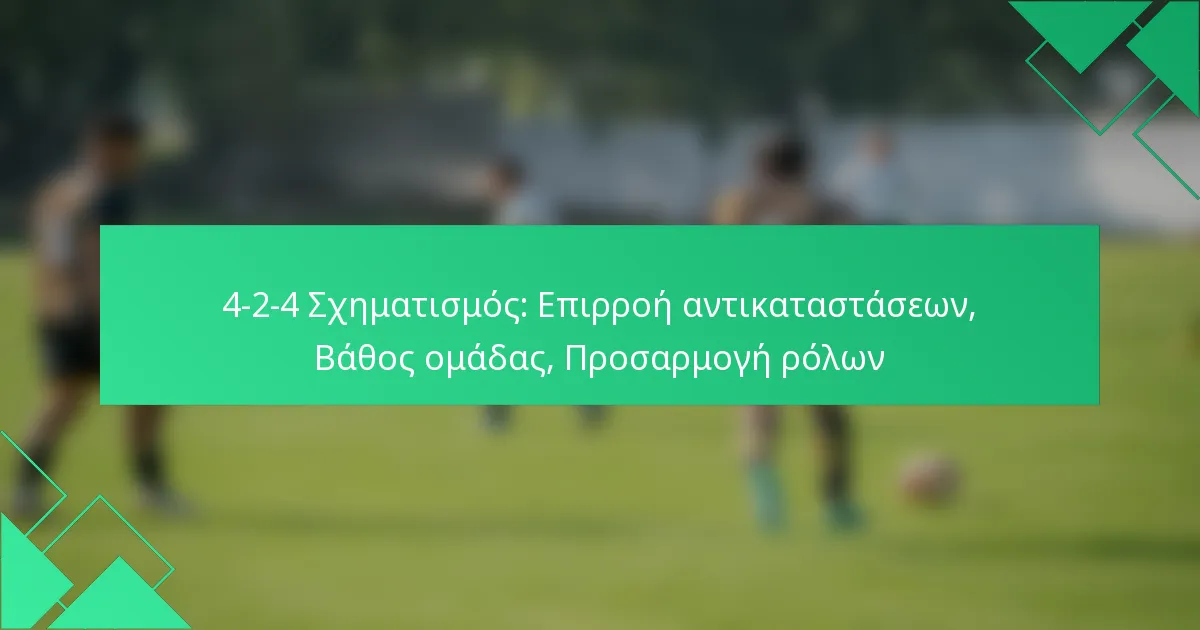 Η διάταξη 4-2-4 είναι μια δυναμική τακτική ρύθμιση στο ποδόσφαιρο που ισορροπεί μια ισχυρή επιθετική παρουσία με μια σταθερή αμυντική βάση. Η αποτελεσματικότητα αυτής της διάταξης επηρεάζεται σε μεγάλο βαθμό από τους αναπληρωματικούς, οι οποίοι μπορούν να προσθέσουν φρέσκια ενέργεια και να προσαρμόσουν στρατηγικές κατά τη διάρκεια του αγώνα. Επιπλέον, το βάθος του ρόστερ παίζει κρίσιμο ρόλο, επιτρέποντας στις ομάδες να διατηρούν τα επίπεδα απόδοσης και να κάνουν τις απαραίτητες προσαρμογές καθ’ όλη τη διάρκεια του αγώνα και της σεζόν.